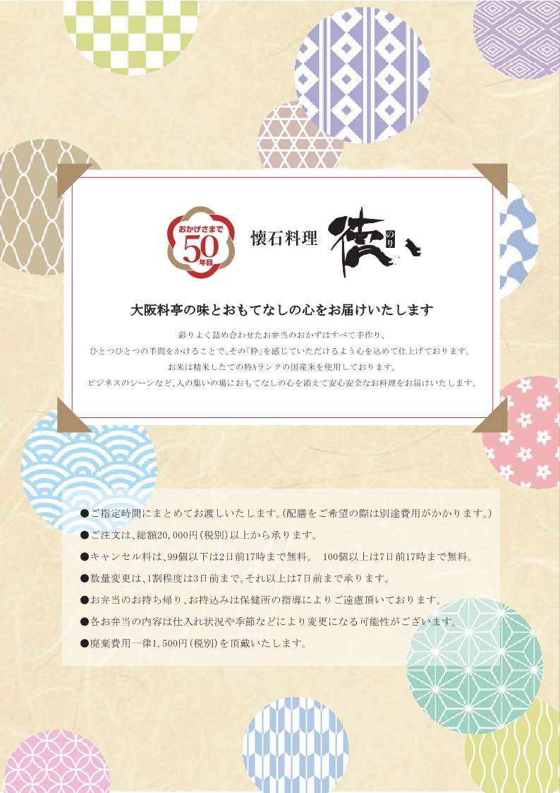 【お弁当 価格改定と新メニュー追加】「徳(のり)」
