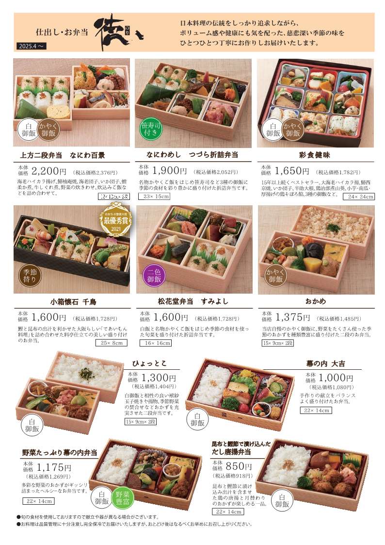 昨今の事情により、お弁当の販売価格の改定と新メニューを追加をさせていただきます。
