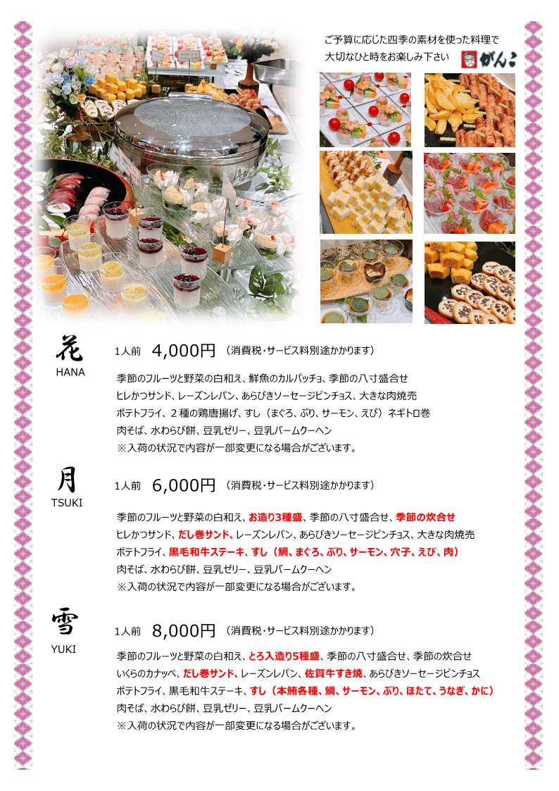 ・花 : 4,000円 ・月 : 5,000円 ・雪 : 6,000円