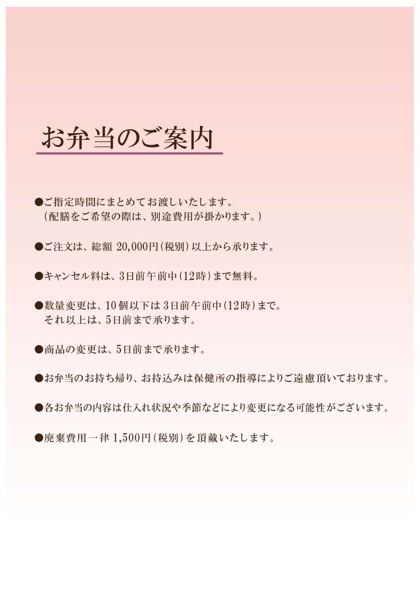 お弁当の新メニューと価格改定のお知らせです。